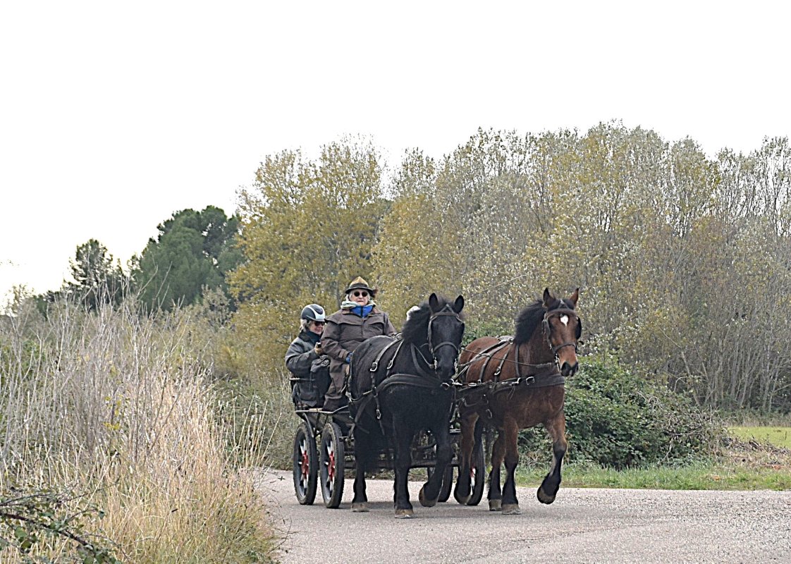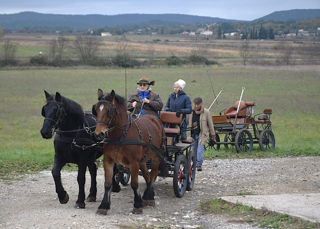 Le 30 novembre 2025, lors de notre dernière balade automnale, neuf attelages ont parcouru les chemins reliant les villages de Salinelles, Campagne et Aspères.