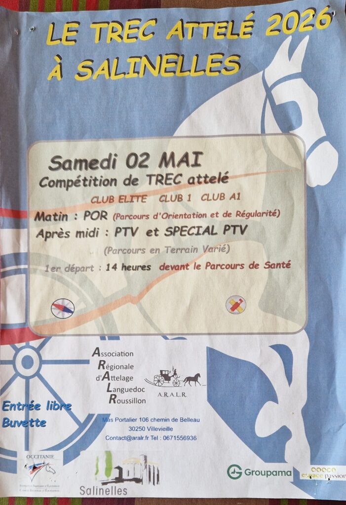 Les 26 et 27 octobre 2025, le championnat de France de TREC attelé (technique de randonnée équestre en compétition) s’est déroulé à Uzès. Trente neuf attelages de toutes les régions étaient inscrits. Six attelages de l’ARALR y ont participé, deux d’entre eux ont été médaillés dans la catégorie « club ».